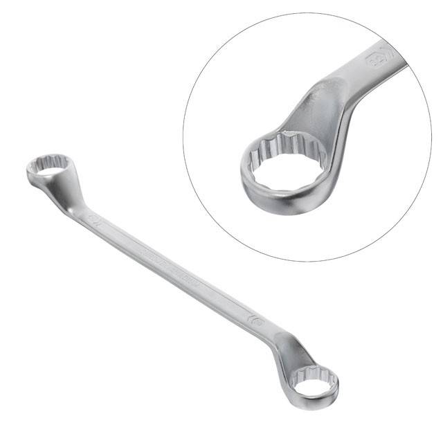 Накидний тип ключів з дванадцятьма гранями збільшує площу прилягання поверхонь та знижує ризик зриву граней гайок та болтів. Практична форма та вигин руків’я ключа забезпечують оптимальні умови для докладання зусилля, завдяки чому ви легко закрутите чи відкрутите кріпильний елемент.