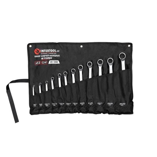 До набору INTERTOOL XT-1203 увійшли накидні ключі, розмірами: 6х7; 8х9; 10х11; 12х13; 14х15; 16х17; 18х19; 20х22; 21х23; 24х27; 25х28; 30х32 мм. Це дозволяє обрати необхідний розмір під будь-які завдання для монтажу та демонтажу різьбових з'єднань гайок та болтів.