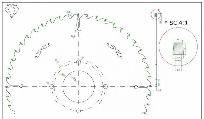 Алмазний підрізний пильний диск серії DSB, призначений для розпилу плит зі збереженням ідеально обробленого краю (використовується з підрізною пилою). Термін використання до 50 разів довший у порівнянні з пилами HМ. Ці алмазні пили є найкращим поєднанням ціни і якості. ОБЛАДНАННЯ: Настільні пили, горизонтальні і вертикальні розпилочні лінії. МАТЕРІАЛ: Одно чи двосторонньо ламіновані плити HDF, МДФ.