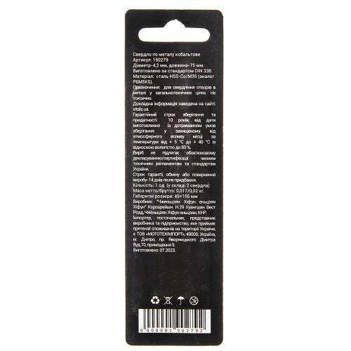 Свердло по металу HSS-Co/M35 4.2 (2 од.) Vitals Professional – це сучасний та ефективний інструмент для свердління отворів у найтвердіших та жаростійких металевих матеріалах. Свердло виготовлене зі спеціальної сталі HSS-Co/M35 (аналог P6M5K5), яка містить 5% кобальту, що підвищує ії твердість, зносостійкість та термостабільність. Свердло відповідає стандарту DIN 338, який регламентує геометричні параметри та точність свердл. Кут заточування свердла становить 135°, що є оптимальним для свердління твердих матеріалів. Твердість різальних кромок свердла сягає 66-67 HRC, що забезпечує довгий термін служби та високу продуктивність свердління. Підточування вістря свердла забезпечує можливість прямого свердління без попереднього центрування, що спрощує роботу та підвищує точність. Шліфована канавка свердла забезпечує оптимальне виведення стружки та запобігає її застряганню та перегріву. Свердло має точні геометричні параметри отворів, які відповідають діаметру свердла. Свердло по металу HSS-Co/M35 Vitals Professional має високу зносостійкість і максимальний ресурс, що робить його ідеальним вибором для професійних і складних завдань зі сведління металу.