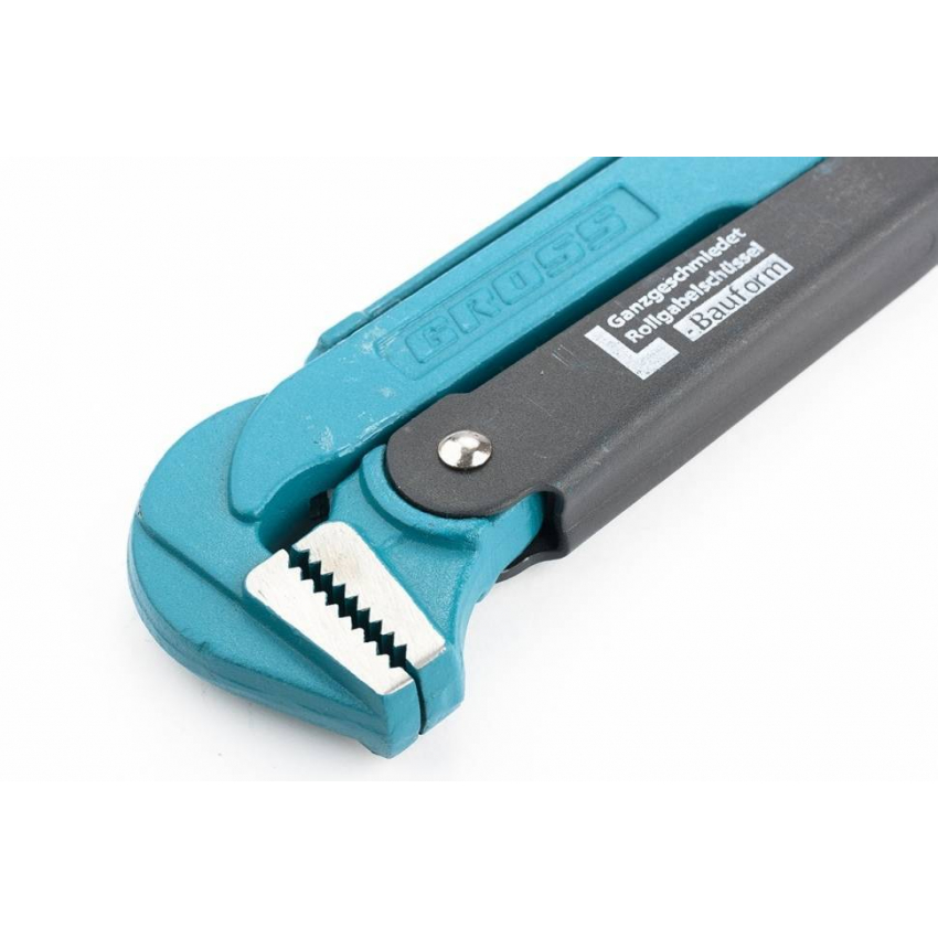 Ключ трубний важільний типу L посиленої конструкції застосовується при підвищених навантаженнях. Призначений для захоплення та обертання труб та з'єднувальних частин трубопроводів. Виготовлений із високоякісної хромованадієвої сталі. Має порошкове антикорозійне покриття. Губки загартовані струмами високої частоти до твердості 57-60 HRС. Прогресивна форма зуба з нахилом проти напрямку обертання забезпечує самоблокується захоплення деталей. Верхня ручка має штампований Т-подібний профіль. Регулювальна гайка має стопорне кільце.