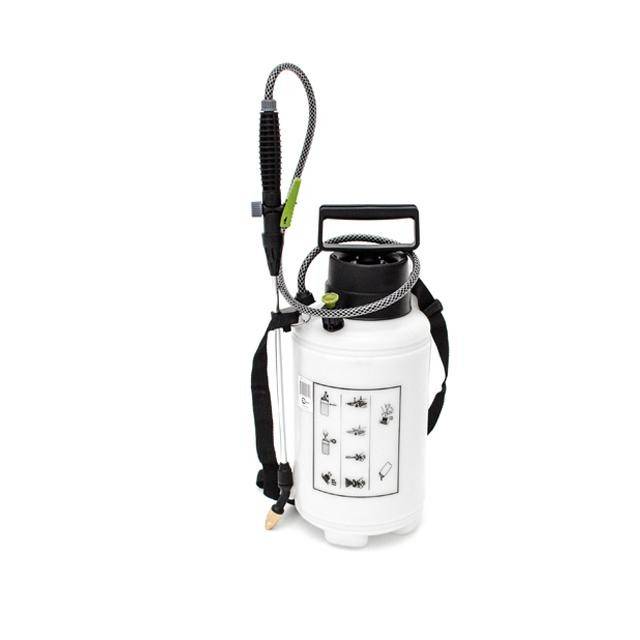 П'ятилітровий обприскувач FT-9005 призначений для роботи в саду, городі, тепличних приміщеннях, для побілки різних поверхонь. Обприскувачем FT-9005 можна виконувати поверхневе поливання рослин, обробку рослин від шкідників та поверхневе підживлення. Ручний обприскувач має латунне сопло, яке легко чистити після виконання всіх робіт. Щоб додати рідину до обприскувача, потрібно відкрутити верхню колбу з насосом та додати до рівня відповідну рідину. Після проведення підкачування і натиснути курок на трубці, що розпилює. Зрозумілий конус рівномірно наносить рідину, що розпорошується, на рослини. Ручний обприскувач на 5 літрів можна використовувати в будь-яких цілях, у тому числі для побілки стін і стовбурів дерев. Ручний обприскувач FT-9005 оснащений двома 'вушками', через які проходить плечовий ремінь. Для зручнішого використання обприскувач можна вішати на плече. Сам обприскувач виготовлений з міцного пластику з товстими стінками корпусу. У комплектацію обприскувача додатково входить ще одне сопло.