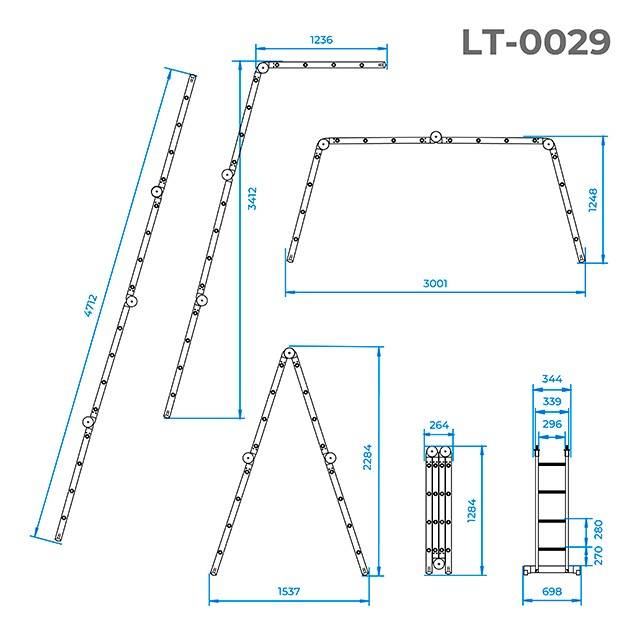 Складані мультифункціональні сходи стануть у пригоді в будь-якій ситуації як професійним майстрам для роботи на висоті, так і для побутових потреб, а також працівникам складів, магазинів тощо. Драбина універсальна і підходить під будь-які завдання, максимальна висота становить 4,7 метри, при цьому сходи можуть трансформуватися в будь-яке з п’яти положень. Вона зручна для використання в домашньому господарстві, наприклад, замінити лампочки, пофарбувати стіни, помити вікна, також її можна використовувати як сходи на дах тощо.