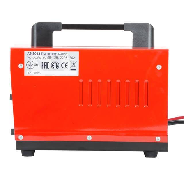 Пускозарядний пристрій AT-3013 допоможе завести автомобіль, коли зарядки акумулятора недостатньо для запуску двигуна. Цим пристроєм також можна заряджати акумуляторні батареї ємністю до 100 Аг з живленням постійної напруги 6 та 12 В. Підходить практично для всіх батарей: мотоциклів, автомобілів, а також для акумуляторів катерів, газонокосарок, гідроциклів, сільськогосподарської техніки, промислового та побутового обладнання.