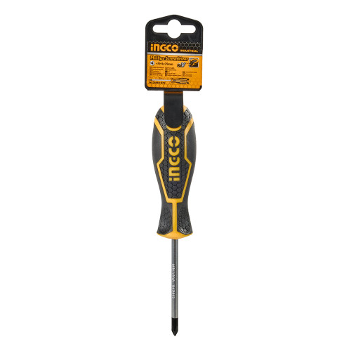 Викрутка хрестова PH 1х75 мм INGCO INDUSTRIAL з хрестовим шліцем Phillips використовується для роботи з кріпленням. Хвостовик циліндричної форми, виконаний з високоякісної хромованадієвої сталі. Довжина стрижня – 75 мм. У комплект входить пластиковий утримувач (1 шт).