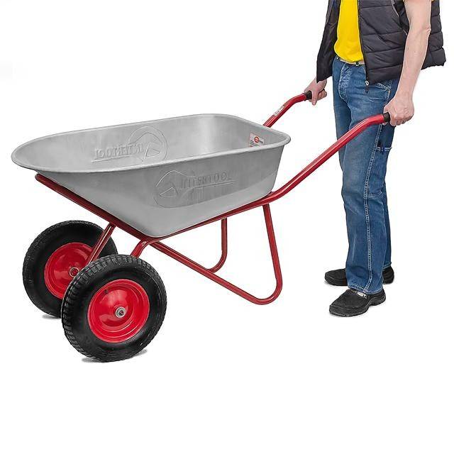 Тачка WB-1025 має оцинкований знімний лоток об'ємом 100 літрів. Тачка складається з розбірних частин, компактно розміщені в упаковці. Рамна конструкція виконана з цільногнутої труби, що збільшує загальний ресурс тачки та витримує заявлене навантаження. Тачка WB-1025 має два пневмоколеса з підшипником, розміром 15 дюймів (4.00-8). Товщина листа, що застосовується при виробництві тачки становить вже 0,9 мм, а вантажопідйомність тачки становить 180 кг. Це одна з найбільших тачок з представлених новинок INTERTOOL. Тачки садово-будівельні та колеса до них.