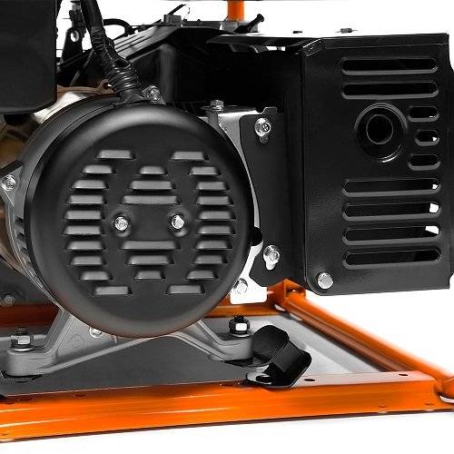 • Міцна металева рама забезпечує захист від механічних пошкоджень двигуна та альтернатора. Вона також служить у якості ручки для перенесення генератора до місця використання. Рама оброблена від утворення корозії, вкрита фарбою.