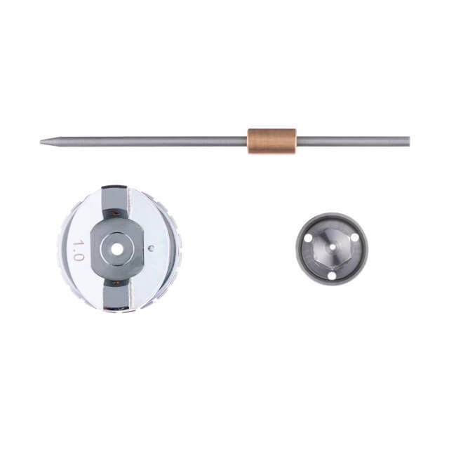 Набір спеціально розроблений для фарбопультів mini. Забезпечує якісне розпилення фарби, що дозволяє досягти рівномірного покриття з мінімальною витратою матеріалу. Оскільки форсунка працює за принципом LVMP (з малим об'ємом споживаного повітря та середнім тиском), вона сприяє економному використанню ЛФМ.