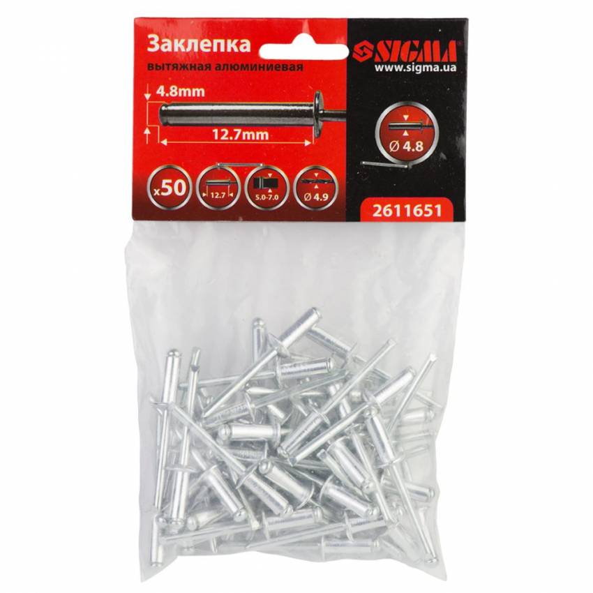 Заклепки алюмінієві Premium 4,8*12,70мм 50шт Sigma (2611651)