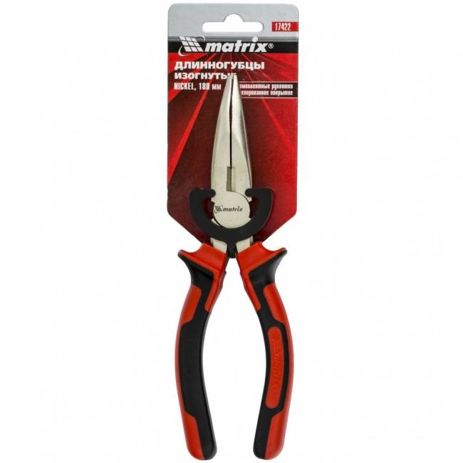 Довгогубці NICKEL, 180 мм, вигнуті нікельовані, двокомпонентні рукоятки, MTX