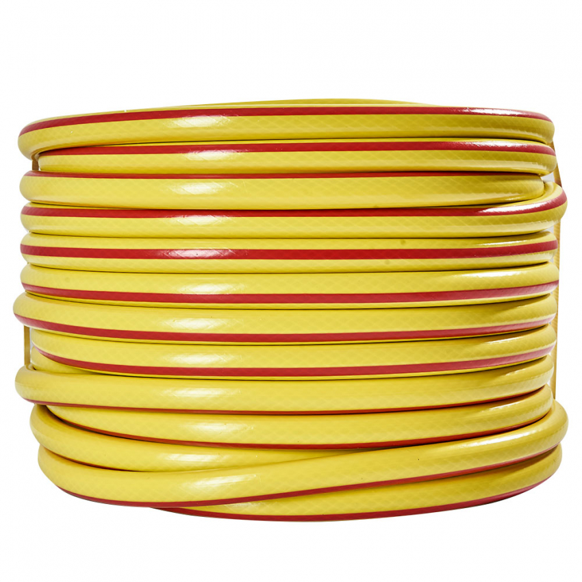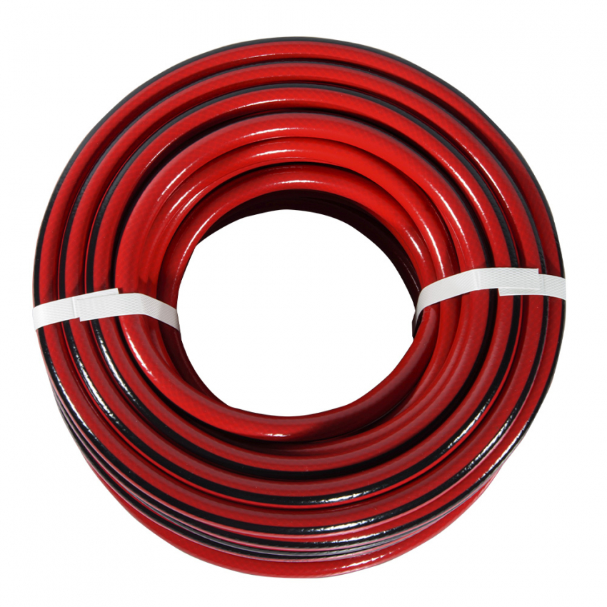 Шланг для поливу Vitals 'Comfort' - це надійний і зручний шланг для поливу саду, городу, газону або клумб. Шланг має діаметр ½' і довжину 30 м, що дозволяє охопити велику площу поливу. Шланг виготовлений з полівінілхлориду (ПВХ), який має високу міцність, еластичність і стійкість до впливу води, ультрафіолетового випромінювання та наростання водоростей. Шланг має три шари: внутрішній, середній та зовнішній. Внутрішній шар - це гладка трубка з ПВХ, яка забезпечує вільний потік води. Середній шар - це армування з хрестоподібних ниток, яке надає шлангу міцності та стійкості до тиску. Зовнішній шар - це захисна оболонка із ПВХ, яка захищає шланг від механічних пошкоджень та впливу навколишнього середовища. Шланг має робочий тиск 10 бар та тиск на розрив 16 бар, що гарантує безпеку та довговічність роботи. Шланг має робочу температуру від – 5 °С до + 45 °С, що дозволяє використовувати його в різних кліматичних умовах.