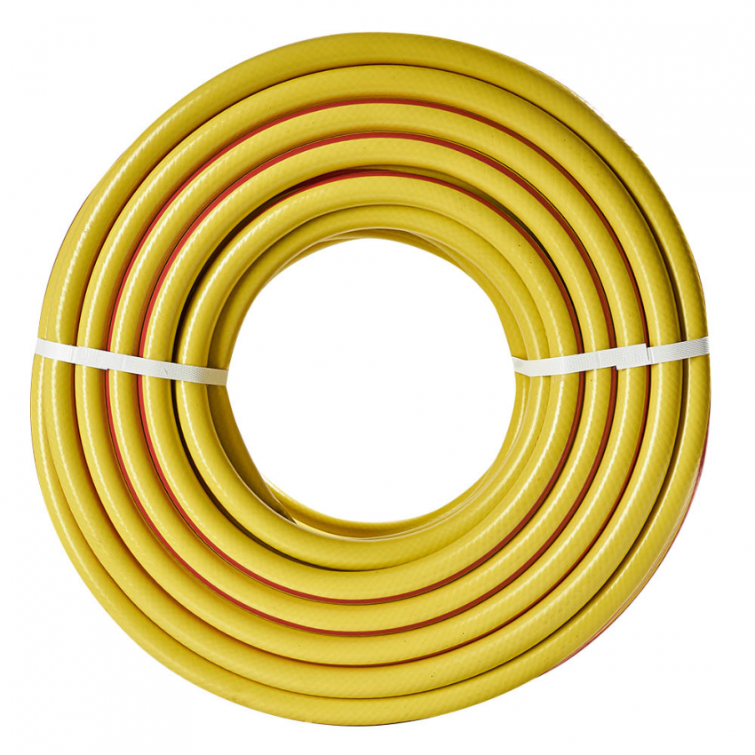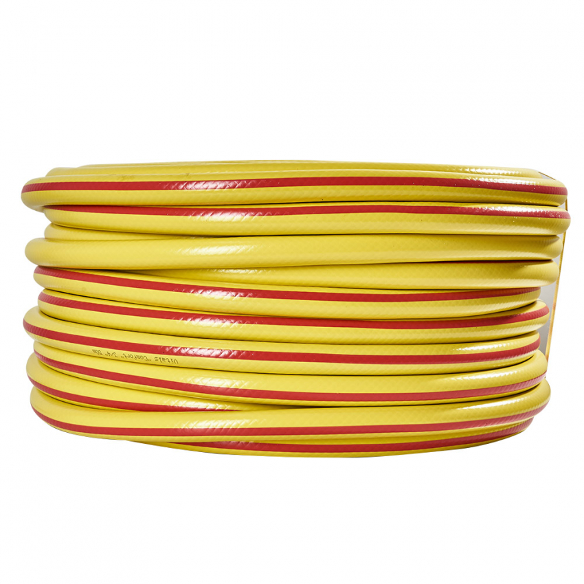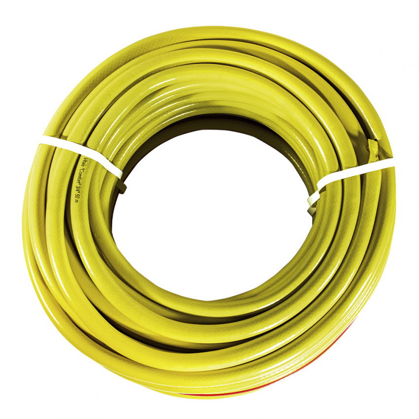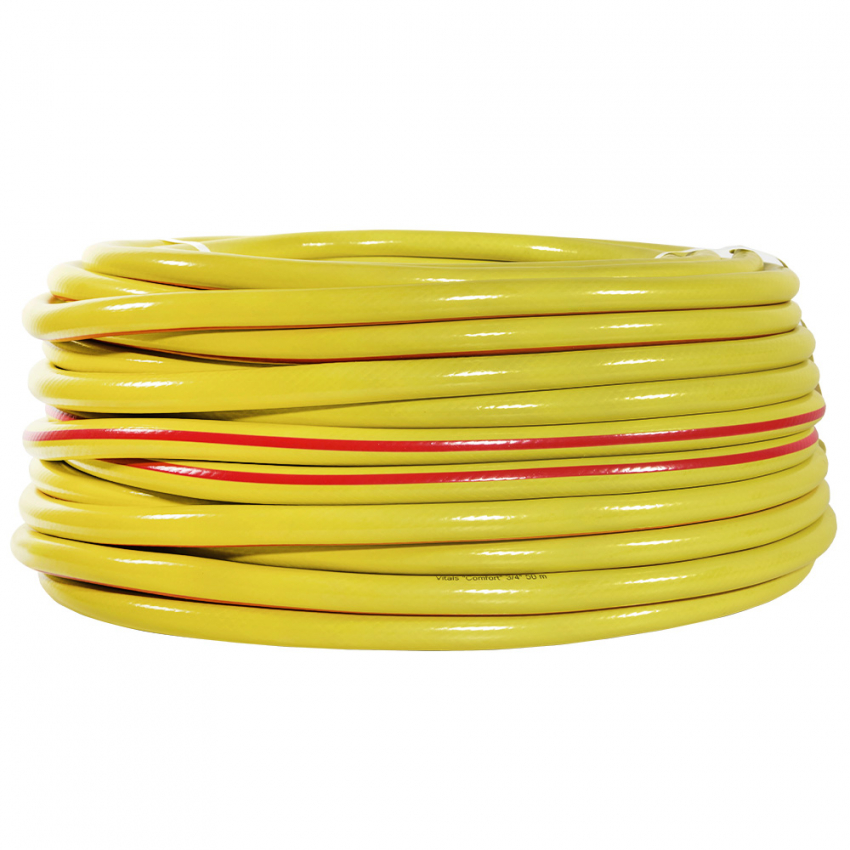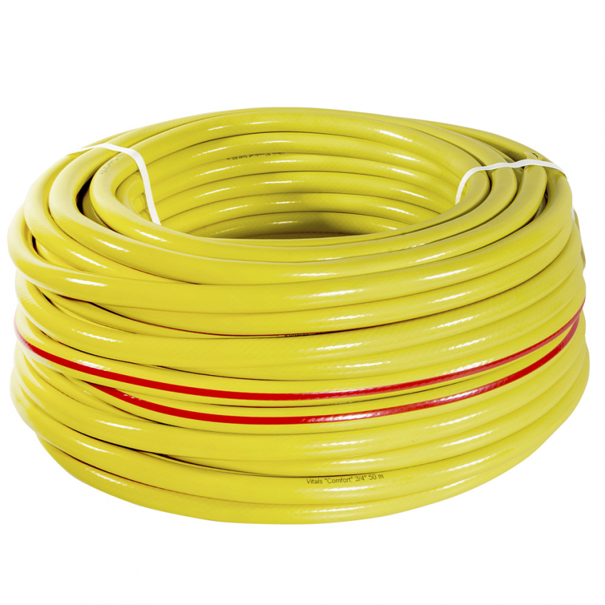 Шланг для поливу Vitals 'Comfort' - це надійний і зручний шланг для поливу саду, городу, газону або клумб. Шланг має діаметр ¾' і довжину 50 м, що дозволяє охопити велику площу поливу. Шланг виготовлений з полівінілхлориду (ПВХ), який має високу міцність, еластичність і стійкість до впливу води, ультрафіолетового випромінювання та наростання водоростей. Шланг має три шари: внутрішній, середній та зовнішній. Внутрішній шар - це гладка трубка з ПВХ, яка забезпечує вільний потік води. Середній шар - це армування з хрестоподібних ниток, яке надає шлангу міцності та стійкості до тиску. Зовнішній шар - це захисна оболонка із ПВХ, яка захищає шланг від механічних пошкоджень та впливу навколишнього середовища. Шланг має робочий тиск 10 бар та тиск на розрив 16 бар, що гарантує безпеку та довговічність роботи. Шланг має робочу температуру від – 5 °С до + 45 °С, що дозволяє використовувати його в різних кліматичних умовах.