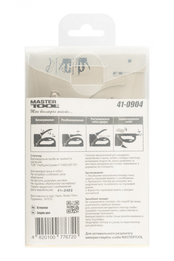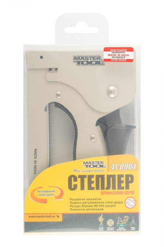 Призначений для кріплення матеріалу до поверхонь із дерева, ДВП, гіпсокартону, пластику з використанням скоб розміром 4-14 мм. Металевий має пофарбований корпус. Ударний механізм ресорного типу. На відміну від пружинного типу, дозволяє регулювати силу удару у великому діапазоні. Ресурс більший, ніж у 2 рази вище, ніж у звичайних моделях. Зручна ручка-запобіжник. На запобіжник ставиться без удару та витрати скоби. Незнімний надійний контейнер для завантаження скоби. Зручний регулятор сили удару.