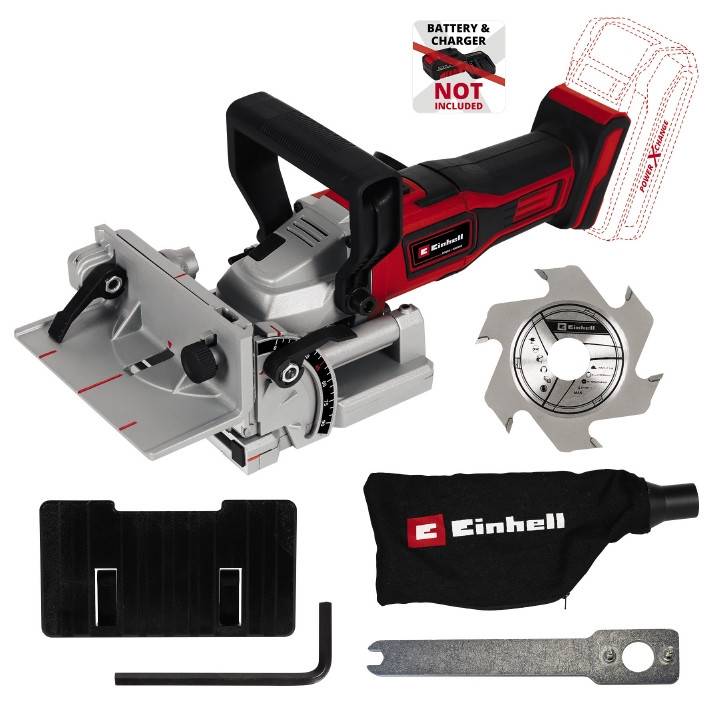Акумуляторний ламельний фрезер Einhell TE-BJ 18 Li — це бездротовий, точний помічник для виготовлення стикових з'єднань. Фрезер є пристроєм сімейства Einhell Power X-Change. Акумулятор і зарядний пристрій Power X-Change можуть використовуватися для всіх пристроїв сімейства Power X-Change. Міцна алюмінієва конструкція забезпечує точне різання пазів. Ламельний фрезер Einhell підходить для всіх стандартних розмірів дюбелів до типу 20. Безступінчаті параметри вирівнювання для налаштування висоти та налаштування кута до 90° є перевагами цього гнучкого помічника. Фрезер має 6-ступінчасте швидке регулювання глибини різання. Блокування шпинделя дозволяє швидко і легко змінювати фрези. У комплект поставки входить торцевий ключ для заміни фрез і мішок для пилу для чистої робочої зони. Завдяки адаптеру пилевідведення цей бездротовий пристрій для також сумісний із пилососами для вологого та сухого прибирання Einhell. Поставляється без акумулятора і зарядного пристрою, вони доступні окремо.