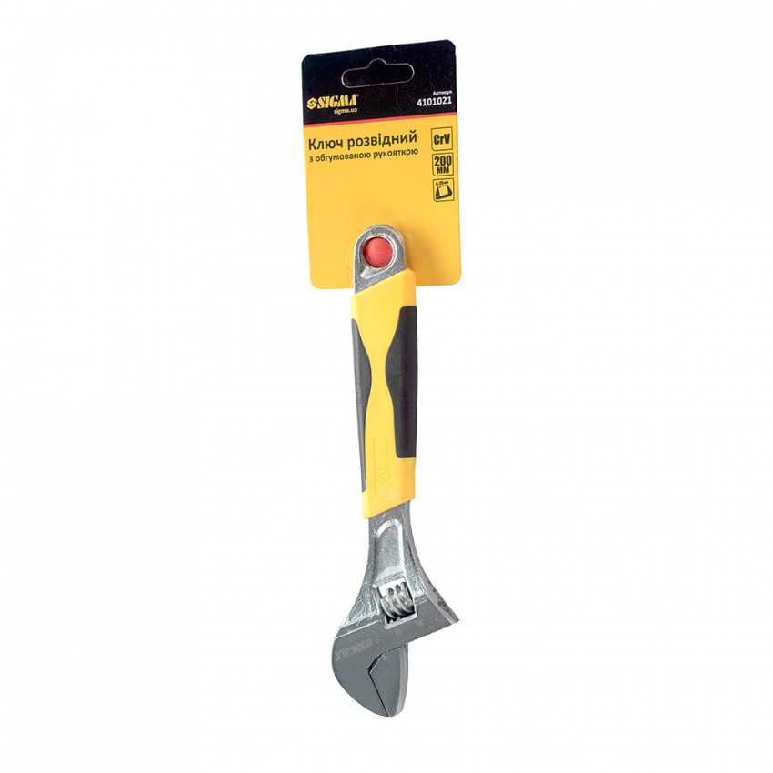 Ключ розвідний 200мм CrV (гум'яна рукоятка) Sigma (4101021)