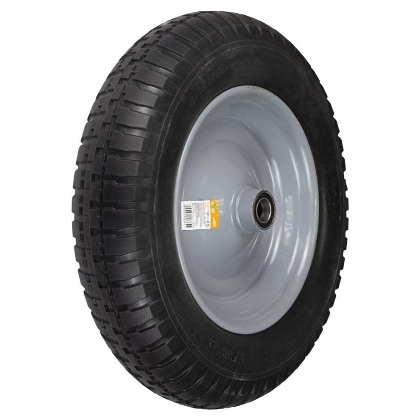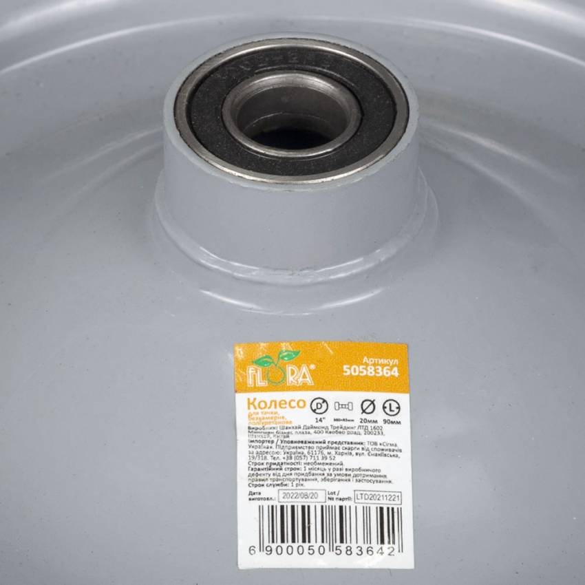 <b>Колесо для тачки безкамерне поліуретанове 14' (3.50-8) 360×85мм вісь Ø20мм довжина 90мм FLORA (5058364)</b>