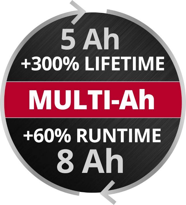 Акумулятор сумісний з усіма інструментами системи Power X-Change Ємність акумулятора можна переключити з 5 Аг на 8 Аг MULTI-Ah технологія: ємність 8 Аг для довшої роботи і ємність 5 Аг для до 3х разів збільшеної кількості циклів заряд/розряд Найсучасніші акумуляторні елементи надають на 100 % більше потужності і на 17% більш компактні, а також на 20% легші за попередні моделі PLUS-технологія: збільшена потужніть для складних робот Активна система керування акумулятором від Einhell Довгий строк служби завдяки адаптивним циклам зарядки Відсутність саморозряду Статус заряду акумулятора показується у % на LED-дисплеї Прогумований корпус - захист від ударів і зручне тримання Корпус захищає від пилу, корозії і механічних ушкоджень Літій-іонний акумулятор 18 В PXC-PLUS ємністю 5-8 Аг є представником сімейства Power X-Change і сумісний з усіма пристроями даної лінійки. Завдяки технології MULTI-Ah, акумулятор можна використовувати в двох режимах з різною ємністю: 8 Aг для максимального часу роботі чи 5 Аг, коли йде менше навантаження на акумулятор і можна виконати до 3 разів більше циклів заряд/розряд. Останнє покоління літій-іонних акумуляторів надають до 100% більше потужності для кожної експлуатації. Також технологія PLUS розроблена для збільшеної потужності для енергозатратних робот. Крім того, високоякісна акумуляторна батарея не має ефекту пам’яті та саморозряду, зазвичай пов'язаному з акумуляторами. Максимальна безпека користувачів досягається за рахунок активної системи керування батареями від Einhell. Адаптивні цикли зарядки значно збільшують строк служби акумулятора. Електронні компоненти акумулятора постійно контролюють найважливіші параметри акумулятора. Літій-іонні елементи мають низький рівень саморозряду. Акумулятор оснащений трирівневим світлодіодним індикатором стану заряду. Від ударів акумулятор захищає прогумований корпус, в якій ергономічно вбудовані всі важливі елементи, який також захищений від потрапляння всередину пилу і від корозії елементів. Інструкція з експлуатації