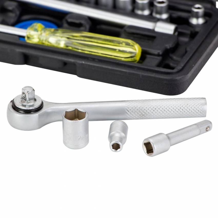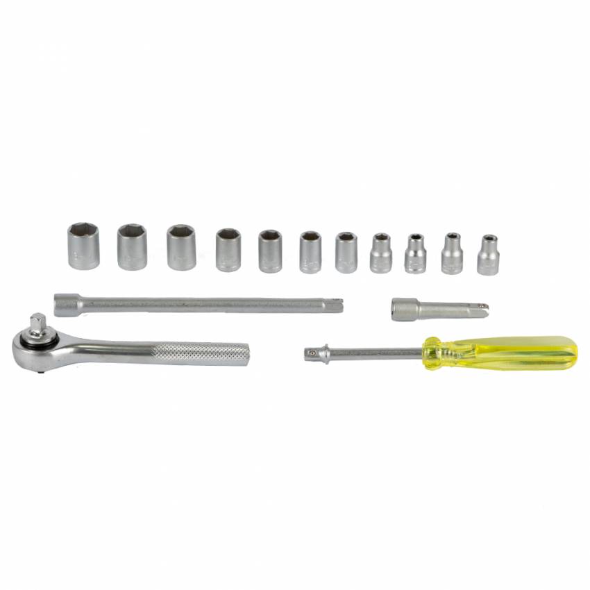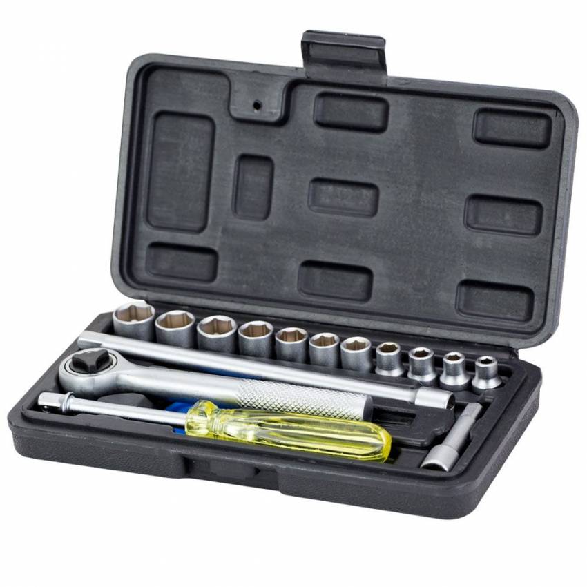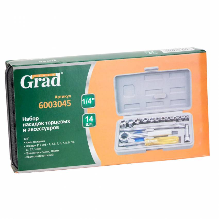 Набір торцевих насадок ¼' Grad 6003045 призначений для роботи з різьбовими з'єднаннями при ремонті та обслуговуванні автомобілів. Інструменти виготовлені з вуглецевої сталі та мають оцинковане покриття. Поставляються у компактному пластмасовому футлярі. Комплектація: тріскачка з реверсом; Подовжувач 50мм; Подовжувач 150 мм; Вороток викрутковий 150 мм; Диск; Насадки: 4, 4.5, 5, 6, 7, 8, 9, 10, 11, 12, 13 мм. Купити набір торцевих насадок Grad Ви можете, оформивши замовлення в нашому інтернет-магазині за допомогою простої форми, доставка здійснюється по всій Україні. Якщо у Вас виникли запитання, Ви можете зателефонувати за вказаними номерами або замовити зворотній дзвінок. Спеціалісти нашого інтернет-магазину нададуть Вам детальні консультації та допоможуть зробити правильний вибір.