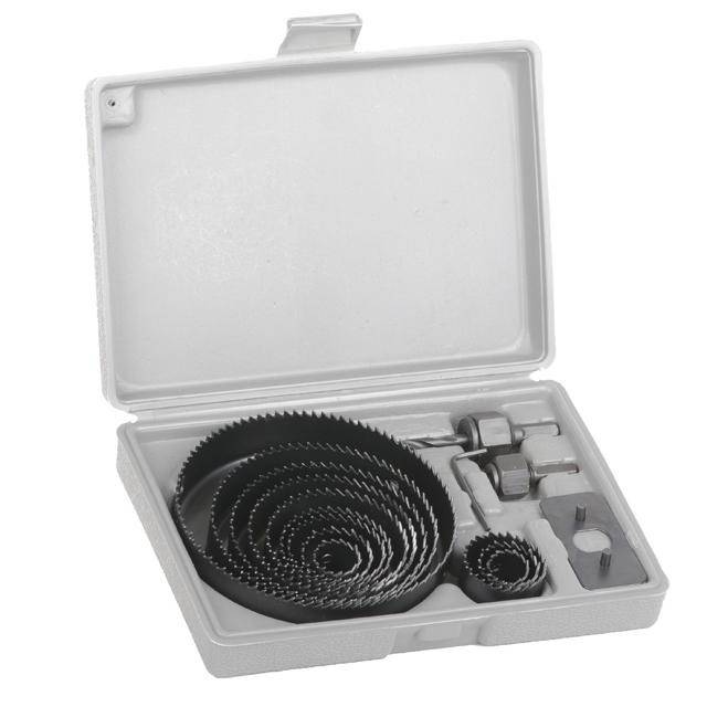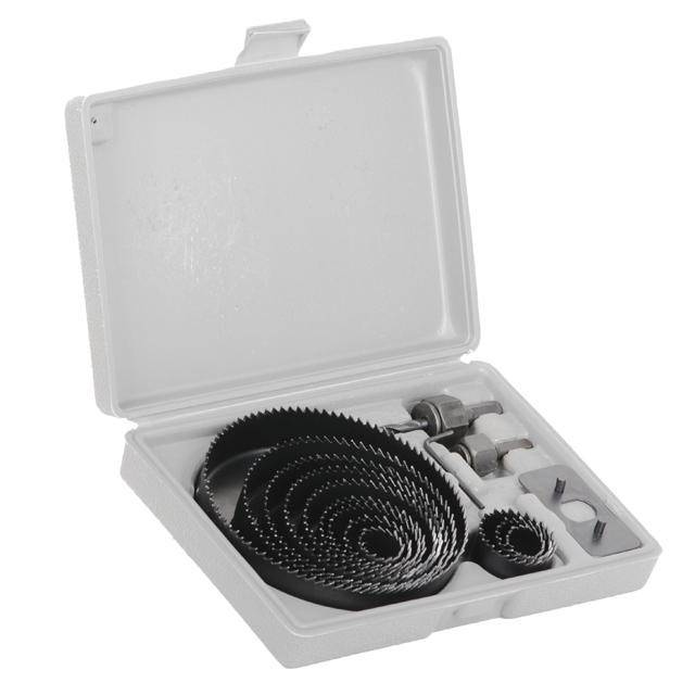 Цей комплект свердел призначений для ефективного й точного свердління м'яких порід дерева, гіпсокартону, пластику, деревно-стружкових плит та інших подібних матеріалів. Вісім коронок діаметром 19, 22, 29, 32, 38, 44, 51, 64 мм забезпечують різноманітність у виборі потрібного розміру отвору для різних завдань.