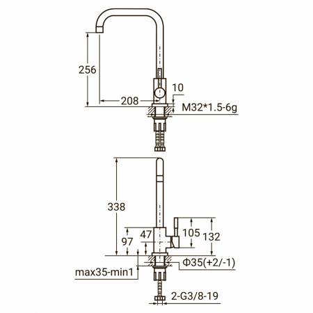 Змішувач KT Ø35 для кухні Г-гуска на гайці SS AQUATICA (KT-4B270P) Мінімальний тиск у системі водопостачання: 0.5 бар Максимальний тиск у системі водопостачання: 10 бар Водневий показник води (pH): 6.5-8.5 Загальна мінералізація0: не більше г/м³ Тільки для чистої води без домішок, що містять абразиви (пісок, глину, вапно тощо) Змішувач для кухні Акватика KT-4B170P виготовлений з нержавіючої сталі, вилив поворотний, Г-подібний. Тип керування – одноважільний. З його допомогою можна зручно помити не тільки столовий посуд, але й великогабаритний (великі каструлі, сковороди та ін.). Підходить для використання як у домашніх умовах, так і у пунктах громадського харчування. Переваги: зручність експлуатації; плавне регулювання подачі води; тривалий термін використання; захист від впливу зовнішніх факторів; Просте встановлення. Щоб підключити одноважільний змішувач для кухні, скористайтесь гнучким підведенням (постачається в комплекті). Догляд за виробом досить простий: для усунення вапняного нальоту та крапель води використовуйте вологу м'яку губку або ганчірочку з мікрофібри. Сильні забруднення можна видалити миючим засобом із гелевою структурою. Гарантія від виробника надається протягом трьох років.