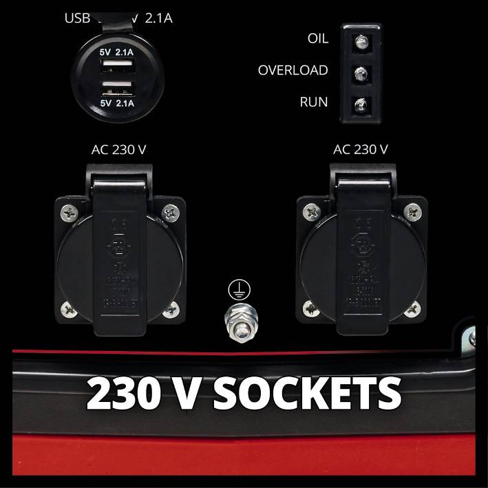 Бензиновий генератор Einhell TC-IG 2000 ідеально підходить скрізь, де необхідно виробляти електроенергію незалежно від електромережі: на ділянках, на будівельних майданчиках, під час кемпінгу, в майстернях і гаражах або навіть для відпочинку в окремо розташованих будівлях, наприклад, лісові, рибальські чи гірські хатинки. Генератор приводиться в рух потужним, міцним 4-тактним двигуном з низьким рівнем викидів з інверторною технологією, що забезпечує потужність без піків напруги. Це означає, що можна підключати та живити навіть чутливе обладнання. Він забезпечує безперервну потужність 1800 Вт і максимальну потужність 2000 Вт. Електрика подається через дві розетки на 230 В, до яких можна підключити всі пристрої. Генератор також має два USB-роз'єми. Закрита конструкція забезпечує тиху роботу. Крім того, генератор захищений вимикачем перевантаження та вимикачем низького рівня масла. Для зручного транспортування генератор оснащений ручкою для перенесення.