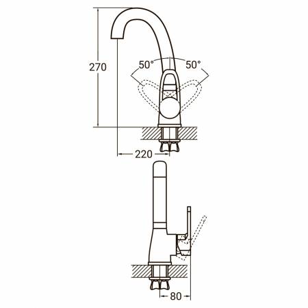 Змішувач HL Ø35 для кухні гусак вухо на гайці AQUATICA (HL-4B130C) Змішувач серії HL з поворотним J-подібним виливом є класичним рішенням для кожної кухні. Цей вилив забезпечує достатньо простору для миття посуду. Завдяки системі простого та прискореного монтажу за допомогою гайки (корони), даний етап здійснюється за лічені секунди, без допомоги додаткового інструменту або будь-яких спеціальних навичок. Важкий і міцний корпус змішувача покритий захисно-декоративним хромонікелевим покриттям, що у свою чергу виділяється чудовим блиском і зберігає свій первозданний вигляд навіть після багатьох років експлуатації. Догляд за сантехнікою 'Aquatica' простий, досить періодично протирати змішувач сухою ганчірочкою і не використовувати абразивні засоби для чищення. Мінімальний тиск у системі водопостачання: 0.5 бар Максимальний тиск у системі водопостачання: 10 бар Водневий показник води (pH): 6.5-8.5 Загальна мінералізація води: не більше 1500 г/м³ Тільки для чистої води без домішок, що містять абразиви (пісок, глину, вапно і т.д.)