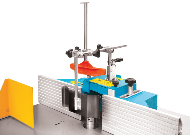 Захисний кожук фрезера і вихід на аспірацію Верстат має великий масивний чавунний стіл зі вбудованим патрубком діаметром 190 мм для відведення стружки |