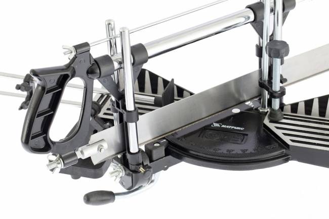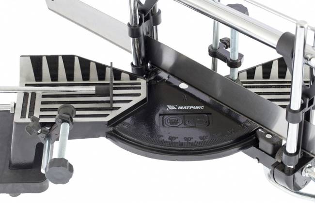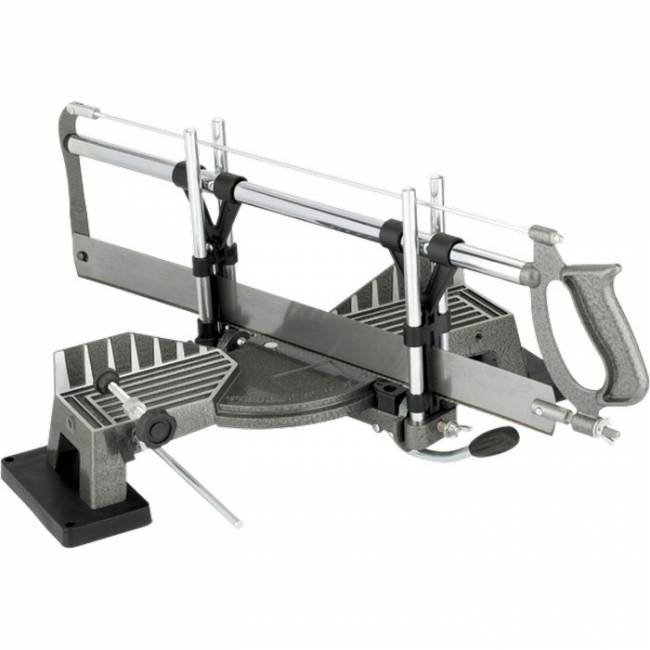Регульований нахил полотна дозволяє робити точні пропили як у горизонтальній, так і вертикальній площині. Кількість зубів на дюйм – 14. Дрібний зуб дозволяє працювати із композитними матеріалами, ламінатом, деревом. Рамна пилка забезпечує жорстку конструкцію. У підставці інструменту є отвори, призначені для кріплення стула до верстата.