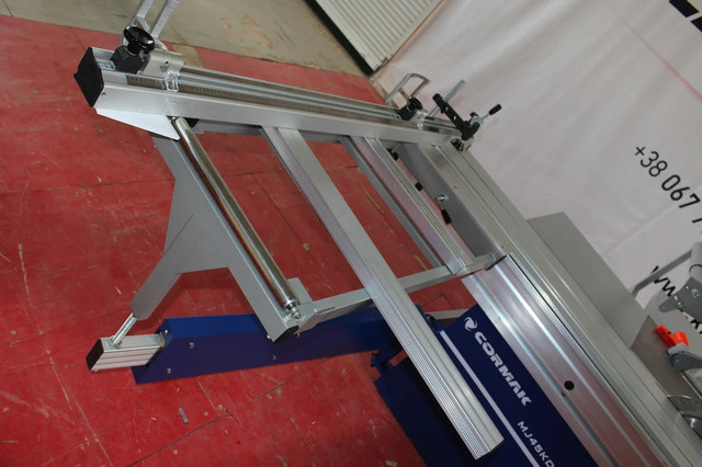 Верстат для розкрою плит МДФ, ДСП, ПВХ, твердої деревини та інших деревних матеріалів або аналогічної структури і твердості. Призначений для малих і середніх столярних підприємств. Верстат оснащений 2-ма моторами: головний двигун: 5,5 кВт і двигун підрізування: 1,1 кВт