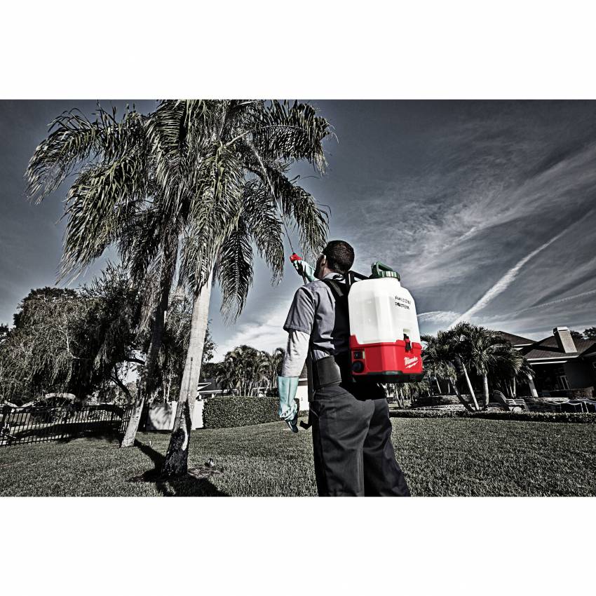 Бак для хімічних розчинів Milwaukee M18 BPFPCST-0 призначений для встановлення на обприскувач та обробки рослин, видалення бур'янів, знезараження транспорту та приміщень, запобігання зледенінням. Резервуар застосовують для дезінфікуючих засобів, гербіцидів, пестицидів, фунгіцидів, внесення рідких добрив. Особливості та переваги моделі M18 BPFPCST-0 (4933464964): економічна подача розчину з оптимальною щільністю покриття забезпечить раціональну витрату; факел розсіювання варіюється від прямого струменя до конуса і дозволить якнайкраще обробити ту чи іншу зону; інтегрований фільтр, що затримує сторонні домішки в препаратах, що заливаються; 5-позиційний перемикач рівня тиску; збільшена горловина для оперативної затоки рідин; ручка для перенесення; шкала на бачку служить для читання обсягу суміші, що залишився; курок фіксується у натиснутому положенні для безперервних маніпуляцій; пістолетною рукояткою з еластичним покриттям зручно оперувати у просторі. 3 причини купити Milwaukee M18 BPFPCST-0 (4933464964): Сумісний з модульною системою Switch Tank, швидко та міцно встановлюється на базовий блок; Міцний пластик з підвищеною стійкістю до хімікатів та ультрафіолету забезпечує тривалий термін експлуатації; Дальність розпилення становить понад 7 м, дозволяючи охопити значну площу з однієї точки. Читати докладніше