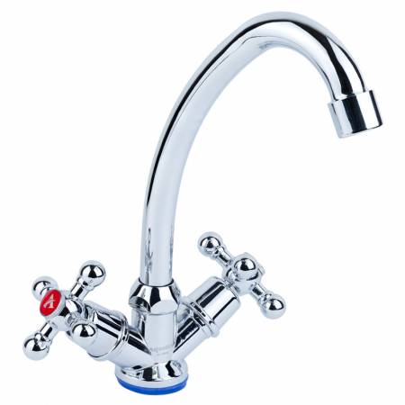 Змішувач QM 1/2' для кухні економ на гайці AQUATICA (QM-1B159C) Продаж кратно 2 шт. Мінімальний тиск у системі водопостачання: 0.5 бар Максимальний тиск у системі водопостачання: 10 бар Водневий показник води (pH): 6.5-8.5 Загальна мінералізація води: не більше 1500 г/м³ Тільки для чистої води без домішок, що містять абразиви (пісок, глину, вапно і т.д.) Двовентильний змішувач для кухні QM-1B159C - це модель бюджетної лінійки ТМ Акватика, виконана в класичному стилі. Його характеризує високий поворотний вилив J-подібної форми та хрестоподібні вентилі з кольоровими заглушками. Цей кран підходить для встановлення на миття різних конфігурацій. Переваги: хромонікелеве покриття із захистом від корозії; насичення потоку води повітрям та утримання вапняних відкладень; плавне відкривання вентилів; просте управління та невибагливий догляд. Змішувач для кухні QM-1B159C встановлюється на миття врізним способом, фіксується гайкою. Гарантія на виріб – 12 місяців.
