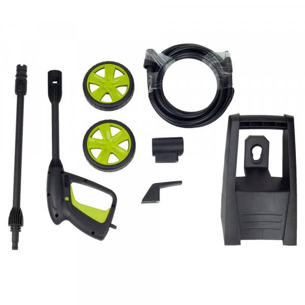 Завдяки ретельно продуманій комплектації пристрою забезпечується оперативне та якісне виконання робочих завдань. До нього додано пістолет, бак для миючого засобу, шланг високого тиску.