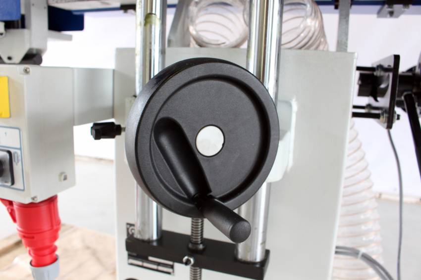 Шліфувальний стіл площею 750 x 300 мм, яким оснащений верстат Stomana KSM 2600 (KSM 2600) також регулюємо по висоті до 200 мм. Установка висоти робиться з метою використання всієї ширини стрічки. Операція осциляції забезпечується окремим двигуном - редуктором. Потужність цього двигуна 0.25 кВт, тактовий хід - 20 мм. Кут нахилу шліфувального агрегату може змінюватися в межах 45 °.