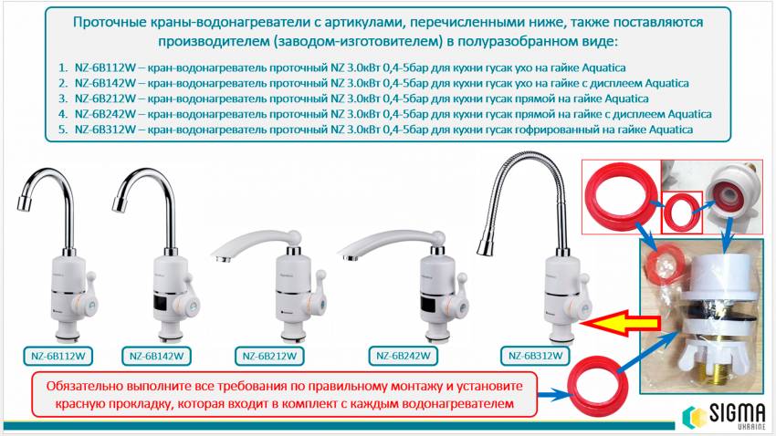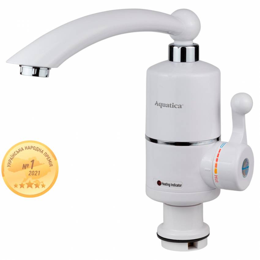 Кран-водонагрівач проточний NZ 3.0кВт 0,4-5бар для кухні гусак прямий на гайці AQUATICA (NZ-6B212W) Клас захисту: IPX4 Мінімальний тиск у системі водопостачання: 0.4 бар Максимальний тиск у системі водопостачання: 6 бар Водневий показник води : 6.5-8.5 Загальна мінералізація води: не більше 1500 г/м³ Тільки для чистої води без домішок, що містять абразиви (пісок, глину, вапно тощо) Проточник для гарячої води є змішувачем з індивідуальним підігрівом і встановлюється на кухні, у заміських будинках чи закладах громадського користування. Проточний водонагрівач NZ-6B212W складається з корпусу, набору нагрівальних елементів, поворотного Г-подібного виливу та маніпулятора, що дозволяє регулювати тиск і температуру нагрівання струменя. Позитивні якості: привабливий зовнішній вигляд; швидкий підігрів; невеликі габарити; захист електричної частини від попадання вологи; висока якість виготовлення. Проточний водонагрівач Акватика підключається до побутової електромережі 220 В. Гарантія на пристрій надається протягом 1 року з покупки.