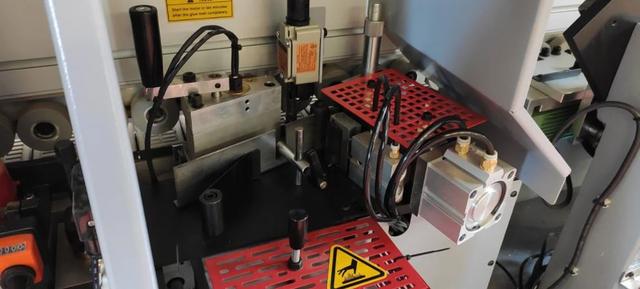 Вузол фрезерування звисів оснащений двома радіусними фрезами R2 (електродвигун кожній – 0,75 кВт, 12000 об/хв) і плаваючими копірами, що дозволяють відслідковувати товщину заготовки, що забезпечує відмінну якість оброблюваної поверхні.