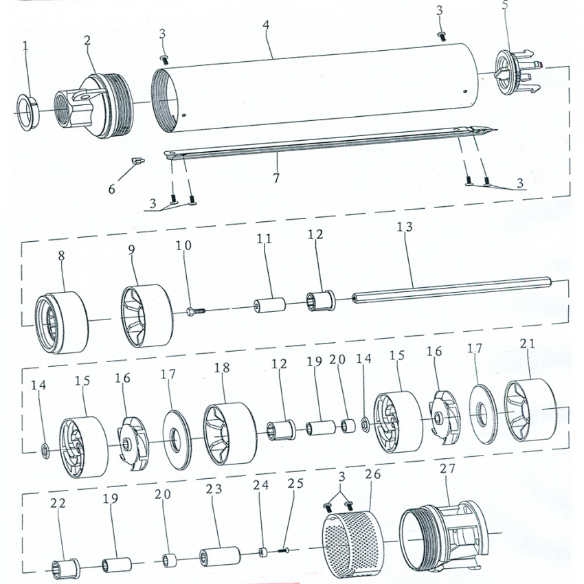 Насос відцентровий 0.75кВт H 84(65)м Q 55(35)л/хв Ø102мм mid DONGYIN (778123) Насоси даної серії призначені для перекачування чистої води і можуть застосовуватися: для побутового використання при водопостачанні кожуха охолодження), для перекачування води в резервуари, для зрошувальних систем, для автоматичної подачі води разом із невеликими резервуарами при використанні керуючої автоматики (керуючі реле, контролери тиску). Насосна частина Корпус насосної частини: нержавіюча сталь Вихідний фланець: чавун з антикорозійною обробкою Вал насосної частини: нержавіюча сталь Муфта вала: нержавіюча сталь Робоче колесо: технополімер Шайба фасонна роздільна: технополімер Дифузор: технополімер Електродвигун термозахистом Обмотка статора: мідь Корпус електродвигуна: нержавіюча сталь Вал двигуна: нержавіюча сталь Механічне ущільнення: кераміка/графіт Підшипник: кочення (C