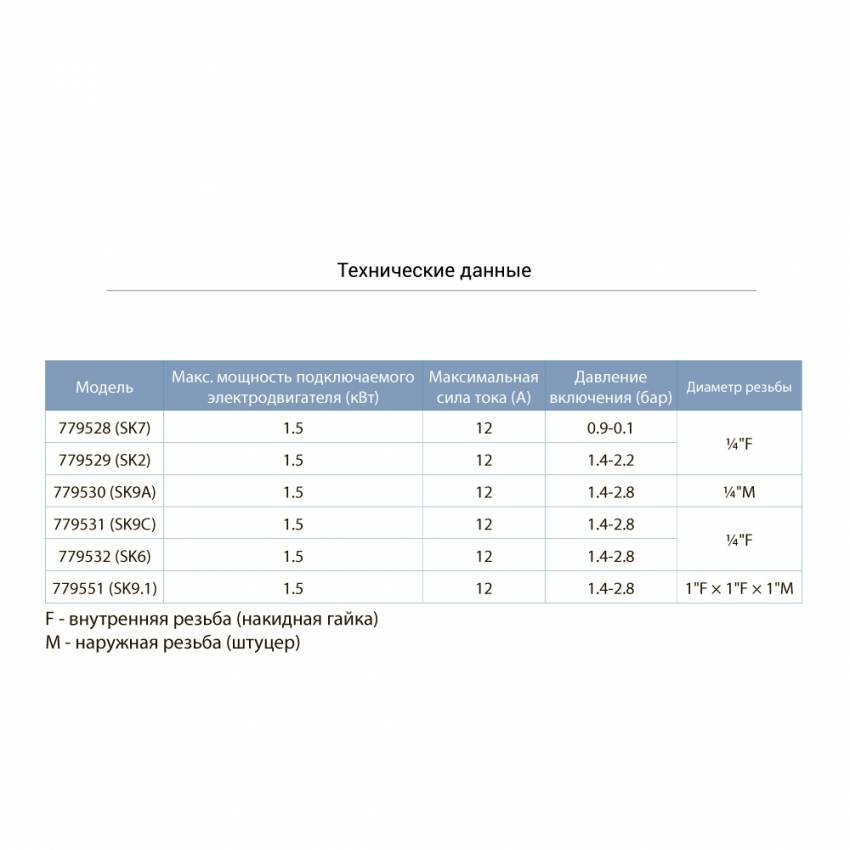 Реле тиску 1,4-2,8 бар (штуцер) AQUATICA (779530) Реле тиску застосовується в автоматичних системах водопостачання, робочим середовищем яких є вода. За принципом дії пристрій є двоконтактним реле комутації електричних ланцюгів, що спрацьовує при досягненні відповідних значень тиску води. Функції: Запуск та зупинка насоса автоматично залежно від тиску; Регульований діапазон тиску. Технічні характеристики: Напруга: 220-240 В; Частота: 50 Гц; Клас захисту IP44. Умови застосування Максимальна температура навколишнього середовища: 40ºС; Реле тиску може працювати лише разом із гідроакумулятором. Технічні дані: Максимальна потужність електродвигуна, що підключається (кВт): 1.5; Максимальна сила струму (А): 12; Налаштування реле тиску: P(вкл) 1.4 бар/P(викл) 2.8 бар; Діаметр різьблення: ¼'M - зовнішнє різьблення (штуцер). Купити реле тиску AQUATICA Ви можете, оформивши замовлення в нашому інтернет-магазині, за допомогою простої форми, доставка здійснюється по всій Україні. Якщо у Вас виникли запитання, Ви можете зателефонувати за вказаними номерами або замовити зворотній дзвінок. Спеціалісти нашого інтернет-магазину нададуть Вам детальні консультації та допоможуть зробити правильний вибір.