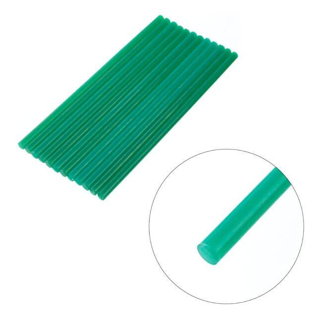 Клейові стрижні зеленого кольору універсальні, підходять для різних завдань. Діаметр стрижня 7,4 мм - один із найпоширеніших і найпопулярніших розмірів, підходить до будь-яких марок клейових пістолетів. Сам стрижень довжиною 200 мм, в упаковці - 12 штук.