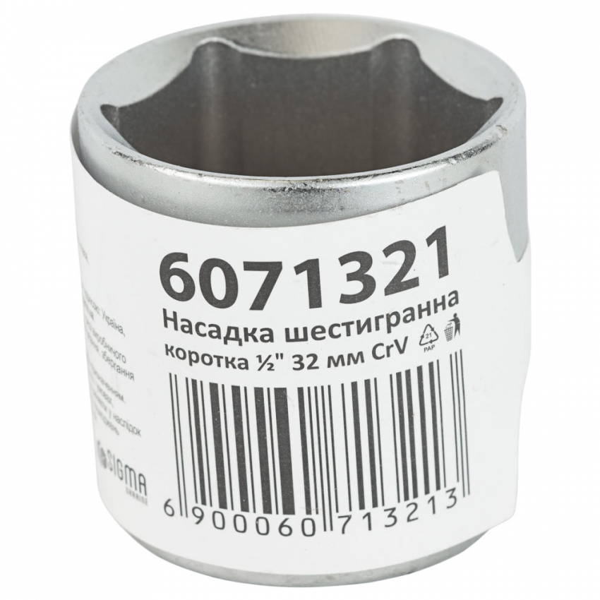 Насадка шестигранна коротка 1/2" 32мм CrV mid Sigma (6071321)