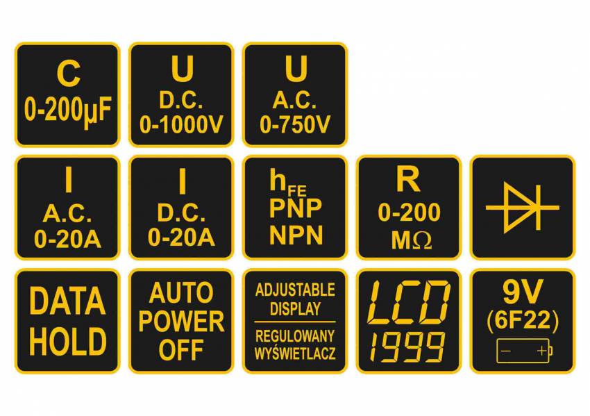 Мультиметр для вимірювання електричних параметрів VOREL: цифровий з LCD-дисплеєм