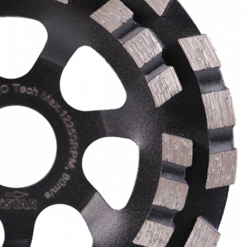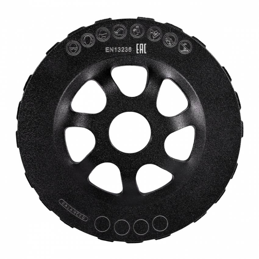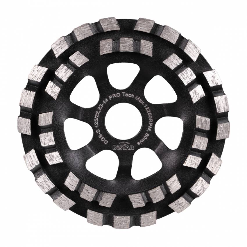 Обробка сучасних матеріалів потребують якісного алмазного інструменту. Pro Tech – доступна алмазна фреза для обробки бетонних поверхонь та натурального каменю. Два ряди турбованих сегментів дозволяють досягти високої продуктивності шліфування, що забезпечує швидке виконання робіт навіть на матеріалах високої міцності. Технологія балансування готового виробу сприяє комфортній роботі без жодних вібрацій та зберігає електроінструмент в належному технічному стані. Полегшений корпус з каплевидними отворами дозволяє шліфувати стіни та стелю без жодних труднощів. Інноваційний алмазоносний шар розроблений обробляти такі матеріали як: бетон, цегла, пісковик, граніт, плиточний клей, самовирівнувальна підлога, цементу стяжка, бетонні панелі для інтер’єру та екстер’єру. Зовнішній діаметр становить 125мм, вага лише 440 грам. Використовується на ручних кутошліфувальних машинах без охолодження.