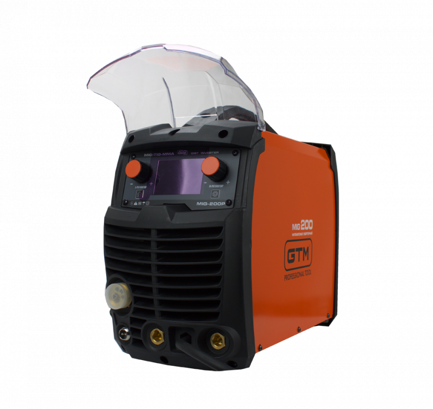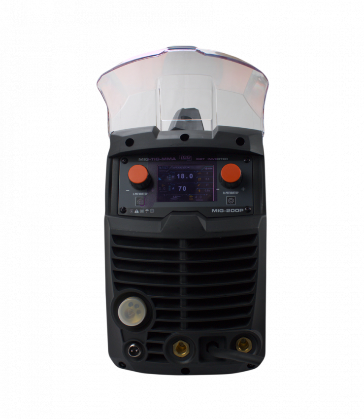 MIG 200A,Single Pulse MIG +Double pulse MIG+DC Normal MIG+MMA+ LIFT TIG, IGBT, Pv-30%/200A, дріт 0,6; 0,8; 1; 1,2мм, 1кг, 5 кг, електрод 1,6-4мм, 8,7 KVA, LCD дисплей, SYNERGY, VRD-зниження напруги холостого ходу для захисту від враження електричним струмом при виконанні робіт в умовах підвищеної вологості, гарячий старт, форсаж дуги,захист від прилипання електроду , металевий протяжний механізм з 4 роликами та плавним регулюванням сили притискання