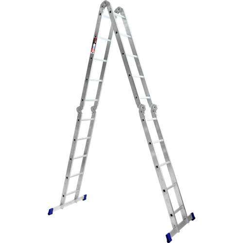Stark SAT 4х5 - алюмінієві 4-х секційні сходи для ремонту, будівництва та господарського застосування. Виготовлена з міцного алюмінієвого профілю, дозволяє працювати на висоті до 6,68 м. Універсальні алюмінієві сходи, які складаються з 4 секцій по 5 сходинок. Сходи можна використовувати для різних цілей: як двосторонню драбину по 10 ступенів з кожної сторони із загальною висотою 291 см; як поміст висотою 150 см; а також як суцільні сходи висотою 5,78 м. Сходинки шириною 33 см дає можливість зручно стає, і працювати на сходах. Сходи Stark SAT 4х5 виготовлені з міцного алюмінієвого профілю з параметрами 63х25 мм, що дозволяє витримувати до 150 кг. Для компактного зберігання та перевезення сходи складаються до висоти 150 см і важать 15,1 кг. Сходи-трансформер Stark SAT 4х5 зручний інструмент для роботи на будівельному, ремонтному та монтажному об'єкті. Завдяки різним формам установки легко використовувати у різних сферах діяльності, у різних приміщеннях на висоті до 6,68 м.