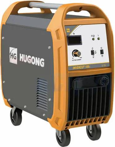 Hugong Invercut 100 - апарат повітряно-плазмового різання для розрізу металевих виробів, предметів з кольорових металів та ін. Підходить для роботи з нержавіючої сталлю, вуглецевих та низьколегованих сталей. У комплект постачання не входить рукав. Переваги Hugong Invercut 100: цифровий дисплей дозволяє точно налаштувати та контролювати процес різання; апарат захищений від перегріву та перевантаження при перепадах напруги для тривалого терміну служби; використовується як для ручного, так і для автоматичного різання; у системі використовуються удосконалені IGBT транзистори, завдяки якій апарат працює якісно довгі роки; повітряне охолодження запобігає поломці апарату; зручна рукоятка на корпусі забезпечує легке переміщення плазморізу; трифазний плазморіз має невеликі габарити 570мм*300мм*670мм для зручної роботи в різних умовах; робочий цикл зварювання 100%, 60% – 100А; працює в режимах 2T/4T, продування газом. Повітряно-плазмовий апарат Hugong Invercut 100 забезпечує якісне та точне різання металевих конструкцій, труб, листового металу та ін.