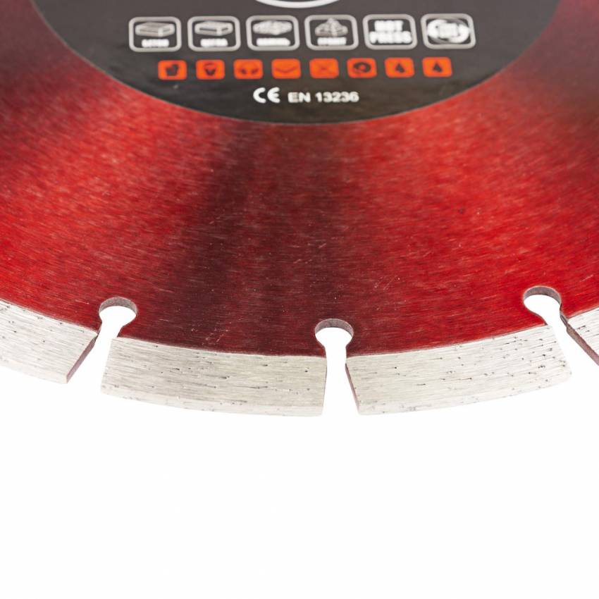 Оптимально підібрані компоненти металевої зв'язки з високою консентрацією високоякісних синтетичних алмазів, прикріпоені до основи круга методом гарячого пресування алмазів (HOT PRESS), забезпечують тривалу експлуатацію та гарантують тривалий робочий ресурс під час роботи, навіть із найскладнішими в обробці матеріалами.