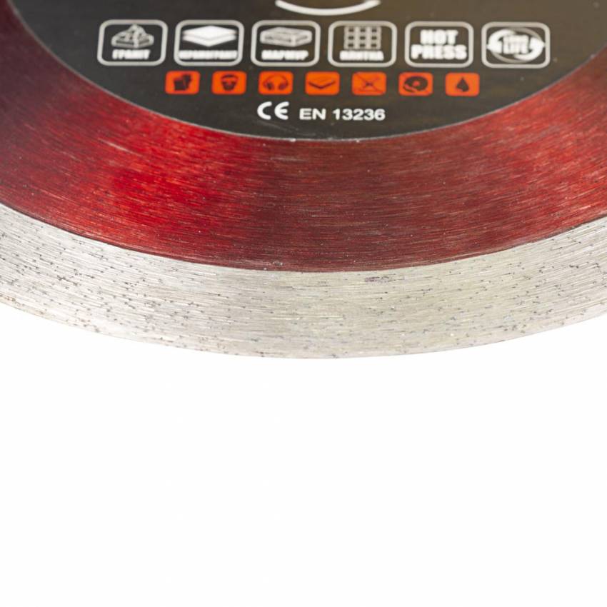 <p style='text-align: justify;'> <b>Круг відрізний алмазний універсальний Ø125×22.2мм ULTRA (1917922)</b> призначений для різання граніту та керамограніту, кахлю, плитки, мармуру, каменю з примусовим охолодженням. Корпус виготовлений із міцної сталі, здатної витримати значне механічне навантаження та високу температуру. Добре збалансована основа зменшує вібрацію на інструмент та забезпечує високу надійність під час експлуатації. </p> <p style='text-align: justify;'> Оптимально підібрані компоненти металевої зв'язки з високою консентрацією високоякісних синтетичних алмазів, прикріплені до основи круга методом гарячого пресування алмазів (HOT PRESS), забезпечують тривалу експлуатацію та гарантують тривалий робочий ресурс круга під час роботи навіть із найскладнішими в обробці матеріалами. </p> <p style='text-align: justify;'> Суцільна форма кромки дозволяє робити якисний рівний зріз без тріщин і сколів. </p>
