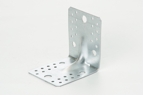 Благодаря ребру жесткости угольник надежно соединяет деревянные элементы.