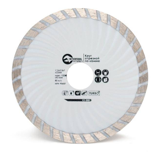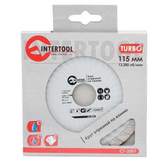 Алмазний відрізний диск TURBO INTERTOOL CT-2001 діаметром 125 мм призначений для використання з кутовими шліфувальними машинами з високою швидкістю обертання, а також з бензиновими ручними відрізними машинами.
