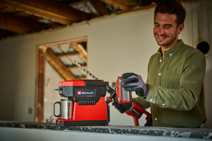 З акумуляторною кавоваркою Einhell TE-CF 18 Li-Solo ви можете насолоджуватися свіжою кавою в будь-який час і в будь-якому місці. На будівництві, на природі чи в поході – де б у вас під рукою не було розетки, ця кавоварка стане в нагоді. Як частина сімейства Power X-Change, кавоварку можна використовувати з будь-яким акумулятором або зарядним пристроєм системи. Система змінних акумуляторів забезпечує необмежений час роботи пристрою без кабелю: коли перший акумулятор розряджається, просто вставте наступний та продовжуйте варити каву. Акумуляторна кавоварка поєднує в собі два способи насолоди кавою: класичну фільтровану каву та практичні кавові капсули. За допомогою контейнера для меленої кави перевірену фільтр-каву можна приготувати за дуже короткий час. Вставка для заварювання кави сумісна з усіма доступними у продажу кавовими капсулами. Час заварювання становить близько 5 хвилин після ввімкнення пристрою. Протягом цього часу машина нагрівається до максимальної температури 80 °C і готує каву. Знімний резервуар для води вміщує 240 мл і розрахований на велику чашку кави. У набір входить пилозахисна чашка для кави з нержавіючої сталі ємністю 240 мл і відповідна кришка. Чашка висотою до 90 мм ідеально поміщається в кавоварку. Підстаканник запобігає випаданню кавової чашки під час переміщення машини. Кавоварку, яка важить лише 1,25 кг, легко транспортувати завдяки вбудованій ручці для перенесення. Гумові ніжки забезпечують неслизьке та стабільне положення, де б кавоварка не була встановлена. Крім чашки для кави, в набір входить мірна ложечка, контейнер для меленої кави з фільтром і контейнер для наявних у продажу кавових капсул. Акумуляторна кавоварка TE-CF 18 Li-Solo поставляється без акумулятора та зарядного пристрою.