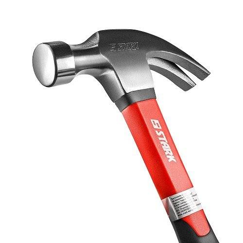 Молоток-гвоздодер Stark 450 для виконання ремонтних, слюсарних, монтажних, будівельних робіт. Завдяки роздвоєній другій робочій частині молотком можна не тільки забивати, але й витягувати цвяхи, вигинати загнуті металеві предмети та ін. Робоча поверхня виготовлена із сталі для високого навантаження та не деформується під час роботи, а також має довгий термін служби. Рукоятка виготовлена з фібергласу, що забезпечує довговічність та стійкість інструменту,